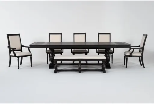 Chapleau III Black Wood 92-120" Extendable Double Pedestal Dining With Bench + Armchair Set For 8 | Rectangular | Furnzy.com - Shop local furniture stores in one place