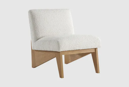 The Chapman Beige Cream Boucle Fabric Accent Chair is a stylish addition to any modern living space. Its armless design and curved features provide a contemporary look that fits well in both kids' rooms and living rooms. The cream-colored boucle fabric offers a soft and inviting texture, making it a comfortable seating option.