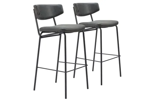 Enhance your dining room with the Charen Vintage Black 40.2" Barstool Set Of 2, featuring a modern design that brings a touch of sophistication to any space. The vintage black color and curved shape provide a stylish and comfortable seating option for your bar or kitchen island. These armless barstools are designed with a sturdy plywood frame and durable polyurethane upholstery, ensuring long-lasting use.