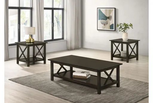 Enhance your living room with the Charlie 3 Piece Wood Coffee Table Set with Storage. This rustic set, finished in a rich merlot color, brings a warm and inviting touch to any space. Made from durable Asian hardwood, this set combines practicality with timeless design. Includes 3 pieces for a complete look. Features ample storage with shelves for convenience. Constructed from sturdy wood and MDF material.