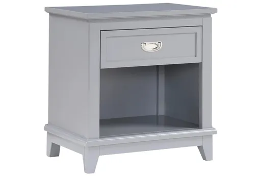 The Chase Grey Wood 1-Drawer Nightstand combines traditional design with practical functionality. Its grey finish and pine wood construction blend seamlessly into any bedroom decor, making it a versatile piece for kids' rooms or master suites. The nightstand offers ample storage with its single drawer and additional open shelf, perfect for keeping bedtime essentials within reach.