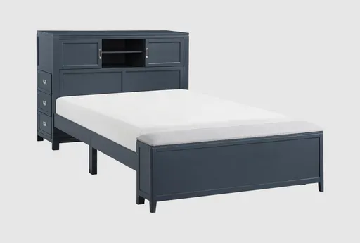 Introducing the Chase Navy Blue Full Wood Bookcase Bed, a perfect blend of traditional style and modern functionality. Crafted from high-quality pine wood, this bed features a rich navy blue finish that adds a touch of sophistication to any bedroom. The full-size bed is designed with ample storage solutions, including a footboard storage bench, hidden pull-out desk, and stool, making it ideal for maximizing space and organization.
