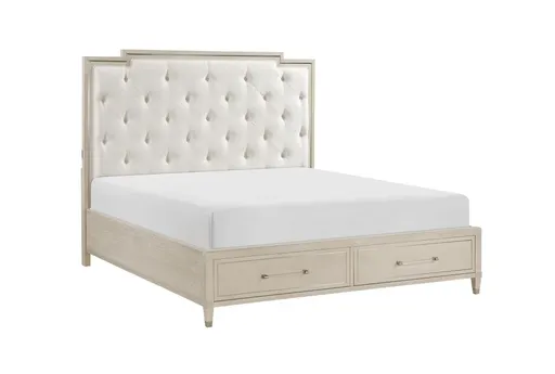 The Chesity California King Platform Bed with Footboard Storage combines modern style with practical functionality. Crafted from light oak wood, this bed features a luxurious chenille upholstered headboard with elegant button tufting, providing a sophisticated touch and comfortable backrest. The footboard includes two spacious drawers, perfect for storing extra bedding or clothing, while integrated USB ports offer convenient charging for your devices.