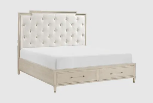 The Chesity King Platform Bed With Footboard Storage combines modern style with practical functionality. Its light oak finish and luxurious chenille upholstered headboard with elegant button tufting add a touch of sophistication to any bedroom. This Eastern King bed is crafted from high-quality Asian hardwood and features convenient storage solutions to keep your space organized.