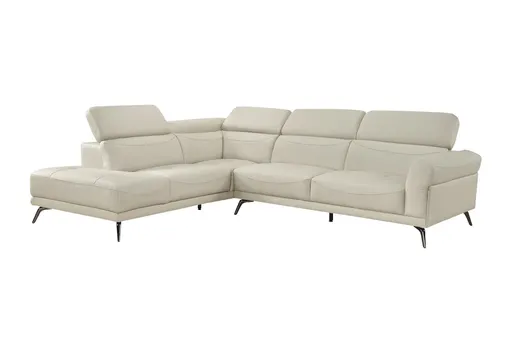 Chesky 2 Piece Sectional With Left Side Chaise brings modern living room furniture flair to a family room or urban loft with a low-profile silhouette and a left-facing chaise that defines a roomy conversation area. Upholstered in beige faux leather with tailored stitched sectioning and track arms, it reads as a refined anchor without heavy visual weight. Adjustable headrests deliver targeted neck and upper back support for lounging and movie nights while hairpin metal legs lift the frame for an airy, contemporary look. The two-piece layout simplifies delivery and placement and functions as a flexible option for both apartment-size rooms and larger great rooms.