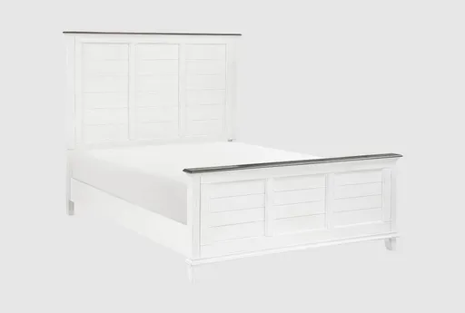 Transform your bedroom into a serene retreat with the Chestley White King Wood Panel Bed. The 2-tone finish of antique white and dark brown brings a charming farmhouse style to your sleeping space. Crafted entirely from wood, this Eastern King size bed is a perfect blend of rustic chic and traditional appeal.