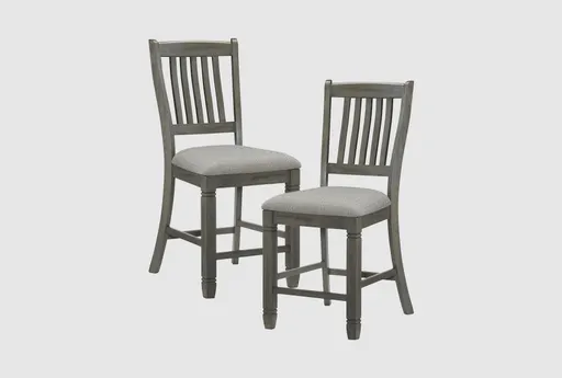 Enhance your dining room or kitchen space with the Chevy Grey Wood 24.5" Counter Height Stool Set of 2. These tall, armless stools feature a beautiful coffee and antique grey finish that complements any farmhouse decor. Made from Asian hardwood, these stools offer both durability and style for your home.