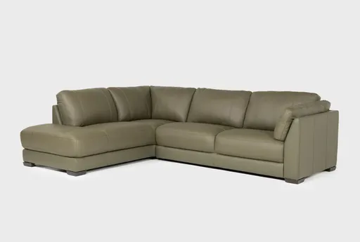 Cillian Olive Green 115" 2 Piece Sectional With Left Arm Facing Corner Bumper Chaise is a modern, large L-shaped sectional that puts comfortable lounging at the center of your living room. Upholstered in 100% top-grain leather with PU match, the left-facing corner bumper chaise creates a generous spot for reclining while keeping leather seating that is made to handle everyday use. The two-piece configuration and a supportive wood frame help the 115-inch layout stay stable in regular use and simplify delivery and placement.