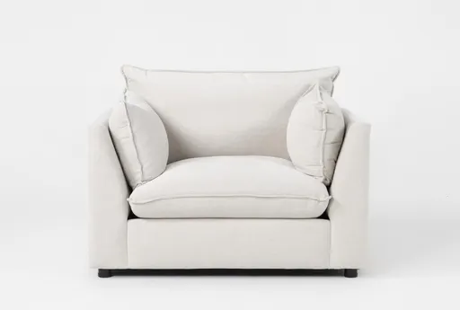The Cirrus Cloud Beige 50" Chair is an ideal addition to any living room. Its rustic style and neutral beige color blend seamlessly with various decor themes. Enjoy the comfort of oversized seating with soft plush fabric that provides a cozy spot to relax. Oversized for ample seating space.