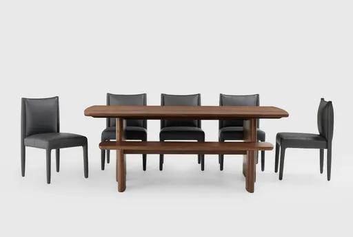 Bring a modern organic aesthetic to your space with our uniquely chic Citra dining set. By combining clean lines and curves, the designs strike a perfect balance of trends. High-quality materials like solid mango wood and mango veneer lend durability and beauty, while premium craftsmanship ensures true longevity. With natural variations in the wood color and grain, each piece is authentically one-of-a-kind. Faux leather dining chairs in black offer a dark, sophisticated look you'll love.