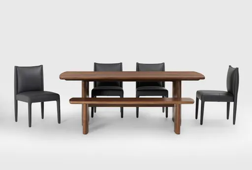 Bring a modern organic aesthetic to your space with our uniquely chic Citra dining set. By combining clean lines and curves, the designs strike a perfect balance of trends. High-quality materials like solid mango wood and mango veneer lend durability and beauty, while premium craftsmanship ensures true longevity. With natural variations in the wood color and grain, each piece is authentically one-of-a-kind. Faux leather dining chairs in black offer a dark, sophisticated look you'll love.