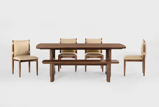 Bring a modern organic aesthetic to your space with our uniquely chic Citra dining set. By combining clean lines and curves, the designs strike a perfect balance of trends. High-quality materials like solid mango wood and mango veneer lend durability and beauty, while premium craftsmanship ensures true longevity. With natural variations in the wood color and grain, each piece is authentically one-of-a-kind. Faux leather dining chairs in tan offer a light, casual style you'll love.