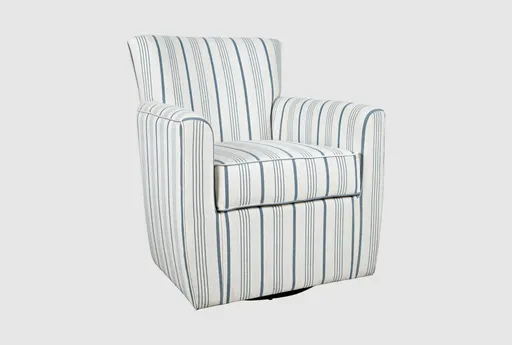 Introducing the Claire White Stripes Fabric Swivel Accent Arm Chair, a perfect addition to your coastal-inspired living room. This firm and supportive club chair features a beautiful striped fabric and a swivel base, making it both stylish and functional. With its track arms and tight back, this chair provides a comfortable seating experience for any room.
