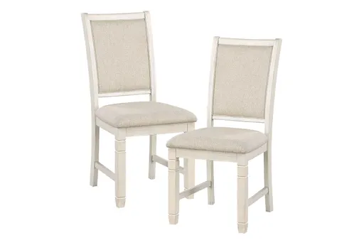 Enhance your dining space with the Clayton White + Brown Dining Side Chair Set Of 2. These chairs feature a charming farmhouse style with an antique white finish, perfect for adding a touch of traditional elegance to your home. Crafted from durable wood and engineered wood, these chairs offer both style and comfort with their fabric upholstery.