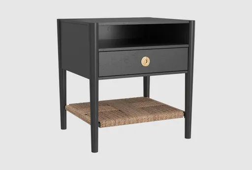 The Clea 1-Drawer Night Table in Olive Green is a perfect blend of modern style and functionality. Crafted from rubberwood solids and oak veneer, this night table offers durability and a sleek look. The woven bottom shelf and brass finish knobs add a touch of elegance to its design.