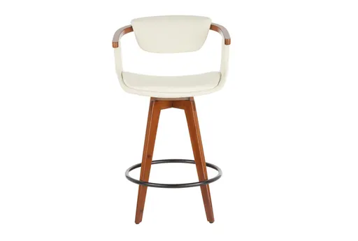 Introducing the Clea Mid-Century Modern 26.5" Counter Height Stool, a perfect blend of style and comfort for your dining room or kitchen. This stool features a walnut bamboo frame and cream faux leather upholstery, offering a sophisticated look that complements any decor. The curved design and tall stature make it an ideal choice for counter height seating.