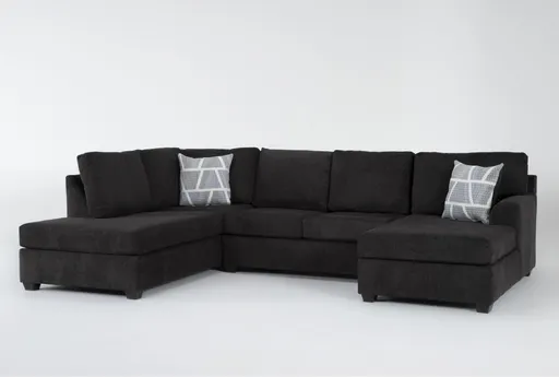 3. Colby Smoke Grey Black Fabric 128" 3 Piece U-Shaped Sectional with Right Arm Facing Chaise & Left Arm Facing Corner Chaise | Track Arms