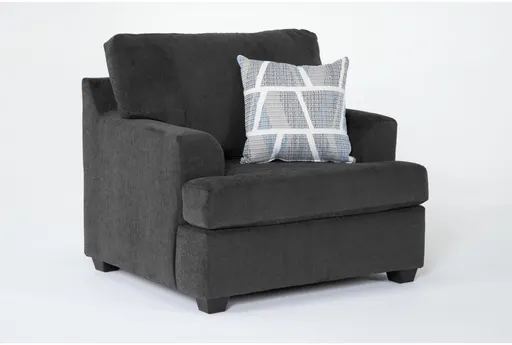 The Colby Smoke Grey Fabric Arm Chair is the perfect addition to your living room, offering a blend of comfort and style. Upholstered in a rich Madigan Smoke color, its track arms and tapered legs provide a modern look that complements any decor. Made from 100% polyester, this club chair ensures durability and ease of maintenance.