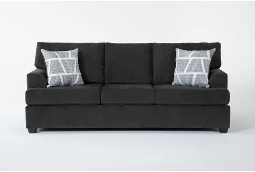 Introducing the Colby Smoke Grey Fabric 88" Sofa, a perfect addition to your living room. With its casual style and Madigan Smoke color, this sofa effortlessly complements any decor. The loose reversible back and track arms provide both comfort and versatility for everyday use.