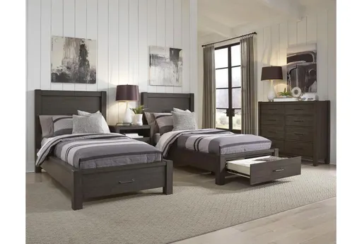 The Colt Brown Twin Wood Platform Storage Bed with USB and Drawers is the perfect addition to any kid's bedroom. Designed in a rustic style with a rich carob finish, this twin-size bed is made from pine wood for durability and longevity. Features such as USB ports and ample storage make this bed both functional and convenient.