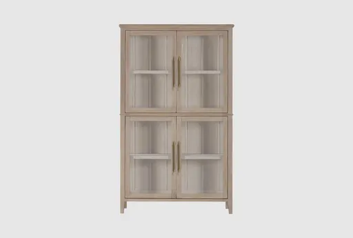 The Condor Brown 4 Door Shiplap 78" Curio in Chai is a perfect blend of modern and contemporary styles, designed to enhance any living space. Crafted from tempered glass and rubberwood, this curio offers a spacious display area with versatile functionality and enhanced stability. Its neutral, soft color makes it an ideal addition to any office, study, or den.