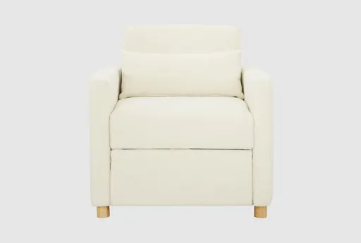 The Conley Ivory White Boucle Fabric Convertible Futon Sleeper Arm Chair is a versatile and stylish addition to any living space. Its casual design and soft ivory color make it a perfect fit for a variety of decor styles. Crafted from 100% polyester boucle fabric and supported by a solid hardwood frame with rubberwood legs, this chair offers both comfort and durability.