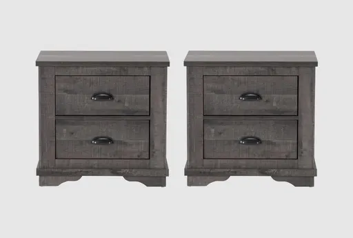 Add a touch of rustic charm to your bedroom with the Cora Grey 2-Drawer Nightstand Set Of 2. These nightstands feature a rustic grey finish that beautifully complements any decor. The two spacious drawers provide ample storage space for your bedside essentials.