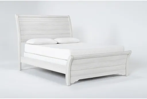 Transform your bedroom with the Cora White Wood Queen Sleigh Bed, a perfect blend of rustic charm and modern style. Its chalk grey finish enhances the natural beauty of the wood, creating a serene and inviting atmosphere. Designed for a queen size mattress, this sleigh bed promises to be the centerpiece of your sleeping space.