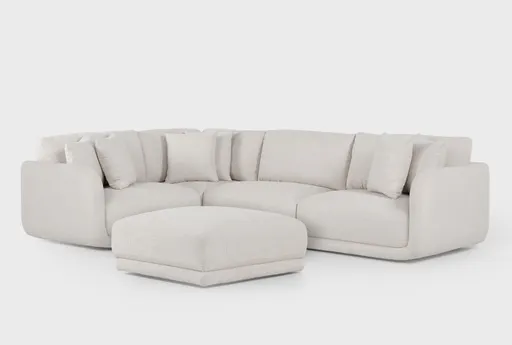 Corba Ecru 4 Piece Modular Sectional & Ottoman with Casters Set brings flexible seating to the living room, so you can arrange the pieces for conversation, movie nights, or a more open layout. Medium-firm cushions upholstered in 100% polyester fabric rest on a pine frame to provide supportive comfort that handles daily use. The ottoman on casters and reversible sections make reconfiguration quick and simple as your needs change.