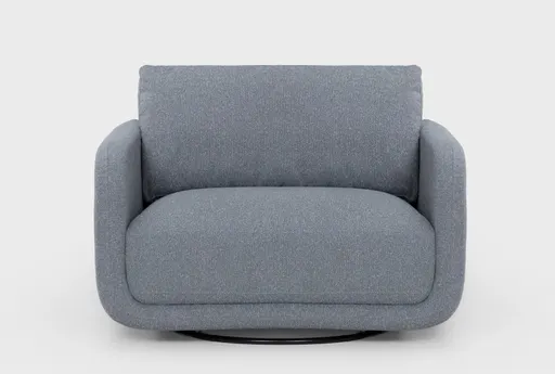 Corba Slate Blue Modular Oversized Swivel Chair offers a roomy, modern seat for your living room with a relaxed, rounded profile that invites lounging. Upholstered in 100% polyester fabric, it balances a soft hand with easy care while the medium firm cushion provides reliable support for long sits. A 360-degree swivel base lets you pivot to face guests or the TV, and the pine frame gives sturdy support while fitting into modular seating arrangements.