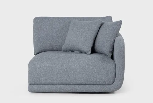 Corba Slate Blue Modular Right Arm Facing Chair pairs modular versatility with medium firm seating that suits everyday lounging and social evenings. Upholstered in 100% polyester fabric over a pine frame, this right arm facing chair connects easily to other modules so you can build the sectional layout you need. Supportive back cushion and resilient seat deliver balanced comfort that holds up in a high-traffic living room.