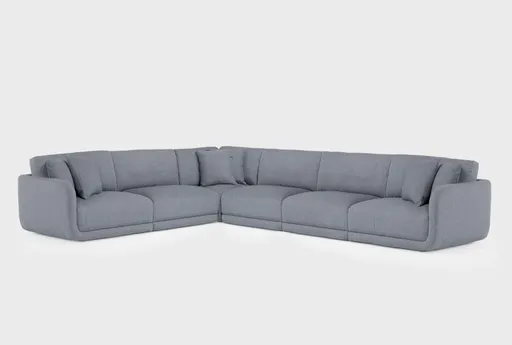 Corba Slate Blue 6 Piece Modular Sectional brings versatile seating to your living room with a modular layout that adapts to your space. Upholstered in 100% polyester fabric over a pine frame, it pairs medium-firm seat cushions with supportive back cushions for everyday comfort and durability. The six-piece configuration lets you arrange the sectional for corners, open plans, or conversation groupings so you can plan movie nights and gatherings with ease.