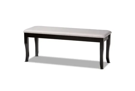 The Cornelie Modern Grey Upholstered & Dark Brown Wood Dining Bench is a perfect addition to your dining room or entryway. Its mid-century modern design features a natural fabric polyester upholstery, paired with a sturdy oak and rubberwood frame. This armless bench offers a comfortable seating option with its foam cushion, making it both functional and stylish.