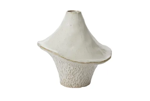 Cornett Ivory 16" Ceramic Vase brings a Modern, sculptural presence to tabletops with its large, irregular silhouette. The glazed ceramic body has a textured base and a flared opening that holds a single stem, a small branch or stands alone as a sculptural accent for a mantel, console or side table.