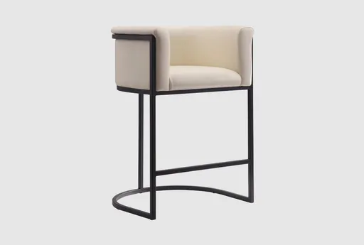 Cosm Cream Faux Leather 26" Counter Height Stool pairs a modern metal sled base with a padded, tub-style seat upholstered in cream faux leather to deliver comfortable counter seating for your dining room or kitchen island. The integrated armrests and cushioned back provide supportive sitting while the sled base includes a built-in footrest for added comfort and stability. At 26 inches tall the compact silhouette is easy to tuck into smaller spaces without sacrificing comfort.