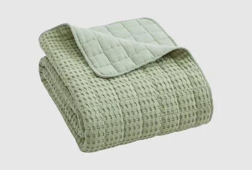Experience the ultimate in comfort and style with the 50X60 Cotton Waffle Sage Green Quilted Throw in DESERT SAGE. This luxurious throw is crafted from 100% cotton, offering a soft and cozy feel that you'll love. Perfect for any setting, it adds a touch of elegance and warmth to your home.