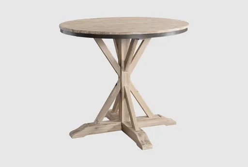 The Creston Natural Wood 42" Kitchen Round Counter Height Table in Beach color is a perfect blend of casual and farmhouse styles. Crafted from acacia wood and metal, this rustic design features a round tabletop and a sturdy pedestal base, making it an ideal addition to your kitchen or dining area.