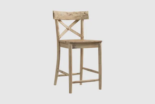 Creston Counter Height Stool brings casual farmhouse charm to kitchen islands and breakfast bars with its x back silhouette and weathered beige finish. The armless profile keeps sightlines open and makes this 24 inch counter height seating a smart small space solution for condos and apartments. It features an acacia wood seat and frame with metal accents that reinforce the footrest and joints for added stability and structural integrity. Textured wood grain and a rectangular x back design deliver classic country appeal while remaining easy to coordinate with neutral, modern farmhouse decor.