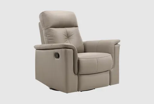 Experience ultimate relaxation with the Croydon Latte Beige Leather Manual Swivel Glider Recliner. This casual yet modern recliner, upholstered in 100% leather, offers a soft, neutral tone that complements any living space. Its versatile design features a tab pull reclining motion, 360-degree swivel, and gentle gliding motion, making it a perfect addition to your living room, family room, or great room. This design is the perfect bedroom chair, reading chair, club chair or accent chair for living room.