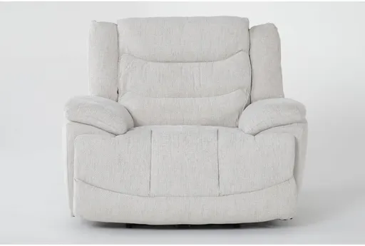 The Cruz Ecru Power Oversized Cuddler Recliner pairs casual comfort with thoughtful technology for relaxed living. Upholstered in a textured ecru fabric with durable upholstery and a firm seating profile, it offers deep-seated support for long lounging sessions while fitting into modern living room furniture collections. Channel tufting sculpts the high back to provide zoned lumbar support and a cohesive contemporary silhouette, and foam cushions wrapped in dacron preserve loft for responsive seating over time. This oversized cuddler seat brings a smart power recliner experience to family rooms, dorms and bedrooms without sacrificing the approachable, casual look you want.