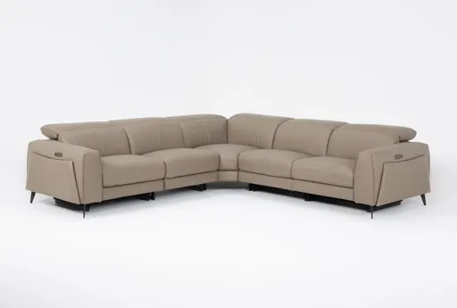 Cullen Taupe Beige Leather 114" 5 Piece Power Zero Gravity Reclining Modular Sectional With Armless Recliner Armless Chair Power Headrest Storage Hidden Cupholders & USB | Furnzy.com - Shop local furniture stores in one place