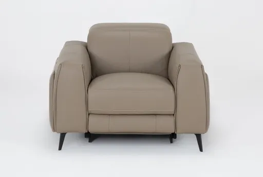 Experience the ultimate relaxation with the Cullen Taupe Beige Leather Power Zero Gravity Oversized Recliner. Designed for contemporary living rooms, this recliner features a power headrest for personalized comfort, ample storage, and convenient cupholders to keep your beverages within reach. The luxurious top grain leather upholstery provides a soft, durable surface that enhances your lounging experience.