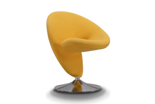 The Curl Yellow Swivel Accent Chair brings a sculptural, modern presence to your living room while keeping comfort front and center. Its curved, enveloping seat is upholstered in a wool blend fabric that feels warm to the touch and stands up to daily use, and the smooth 360-degree swivel makes it easy to shift between conversations, reading, and screen time. A compact footprint and stable pedestal base let you tuck it beside a side table or use it as a bold focal piece without overwhelming the room.