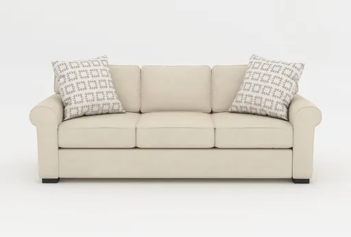 The Cypress Roll Arm Foam Sofa combines a classic rolled-arm silhouette with soft, neutral upholstery to create an inviting focal point for modern living rooms. Upholstered in a 55.30% olefin, 44.70% poly fabric over foam cushions and a supportive wood frame, it balances comfort and structure so you can relax without sinking too deep. Loose back cushions and wood legs give a casual, adaptable look that works for movie nights or everyday conversation. Comfort Foam cushions deliver responsive support for daily lounging. Upholstery 55.30% olefin and 44.70% poly fabric provides a soft, neutral finish that is easy to maintain. Design Rolled arms, loose back cushions, and wood legs create a relaxed, modern seating statement.