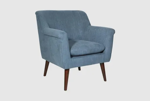 The Dane Blue Fabric Steel Accent Arm Chair with Dark Coffee Legs is a perfect blend of modern and mid-century style, offering a sophisticated touch to any living space. Its firm comfort level and high-performance polyester fabric ensure durability and support, while the rolled arms and solid wood tapered legs add a classic charm. This design is the perfect bedroom chair, reading chair, club chair or accent chair for living room.