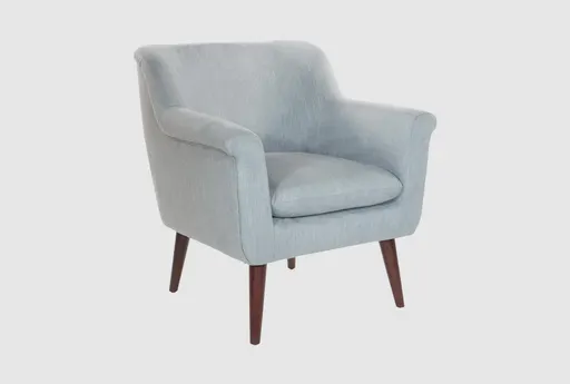 The Dane Charcoal Grey Fabric Accent Arm Chair with Dark Coffee Legs is a stylish addition to any living room. Its modern design and firm comfort level make it a perfect choice for those seeking both aesthetics and support. The chair features rolled arms and a tight back, providing a sophisticated look and feel.