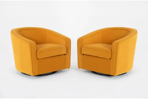 Dani Marigold Yellow Velvet Swivel Barrel Arm Chair adds rich color with its smooth rotating design. The contemporary armchair silhouette features luxurious yellow velvet upholstery that creates an elegant focal point.