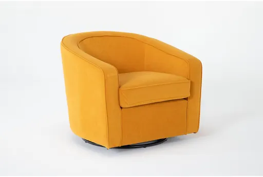 Dani Marigold Yellow Velvet Upholstered Accent Armchair brings luxurious movement to any space with its shapely barrel silhouette, smooth-swiveling mechanism and rich velvet upholstery. This design is the perfect bedroom chair, reading chair, club chair or accent chair for living room. You'll love the grounded color palette, which favors earth tones.