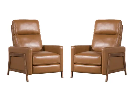 The Daniel Nutmeg Leather Push Back Recliner Set of 2 combines comfort and style for your living room. Its mid-century modern design and chestnut color create a warm, inviting atmosphere. With 100% leather seating and durable PU leather match on the sides, these recliners are both luxurious and practical.