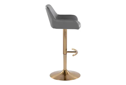 Daniella Contemporary Adjustable 32.25" Barstool With Swivel In Gold Metal And Grey Faux Leather With Rounded T Footrest Set Of 2 | Furnzy.com - Shop local furniture stores in one place